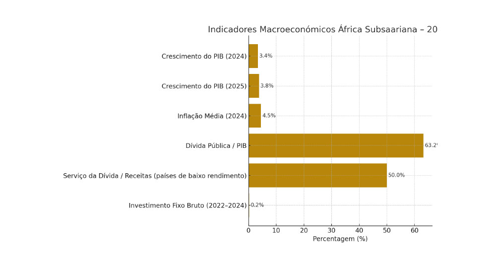 A dívida pública na África Subsaariana atinge 63,2% do PIB, valor semelhante ao período pré-Iniciativa HIPC. O serviço da dívida pública em países de baixo rendimento representa 50% das receitas públicas, limitando o investimento em saúde, educação e infra-estruturas. O número de países em situação de “risco elevado” ou “em distress” duplicou desde 2012, afectando 52% da região.