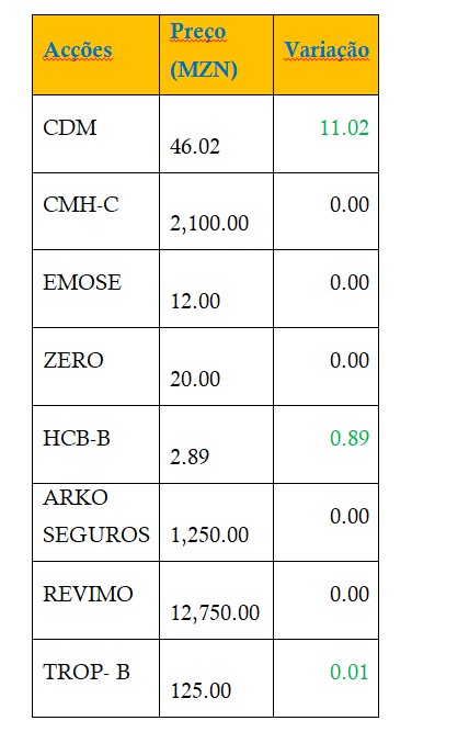 Fonte: Bolsa de Valores de Moçambique