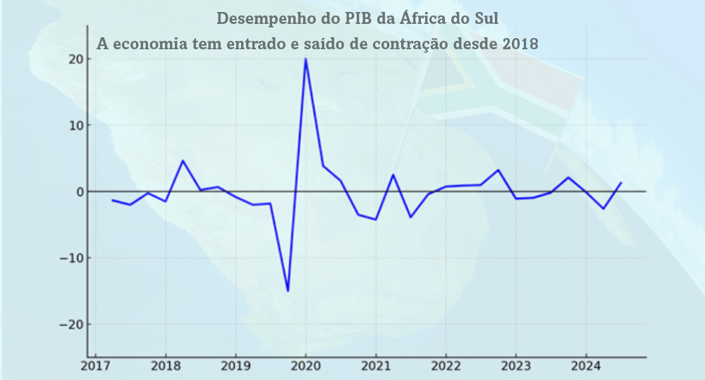 - Desde 2018 que a economia sul africana tem oscilado entre contração e crescimento